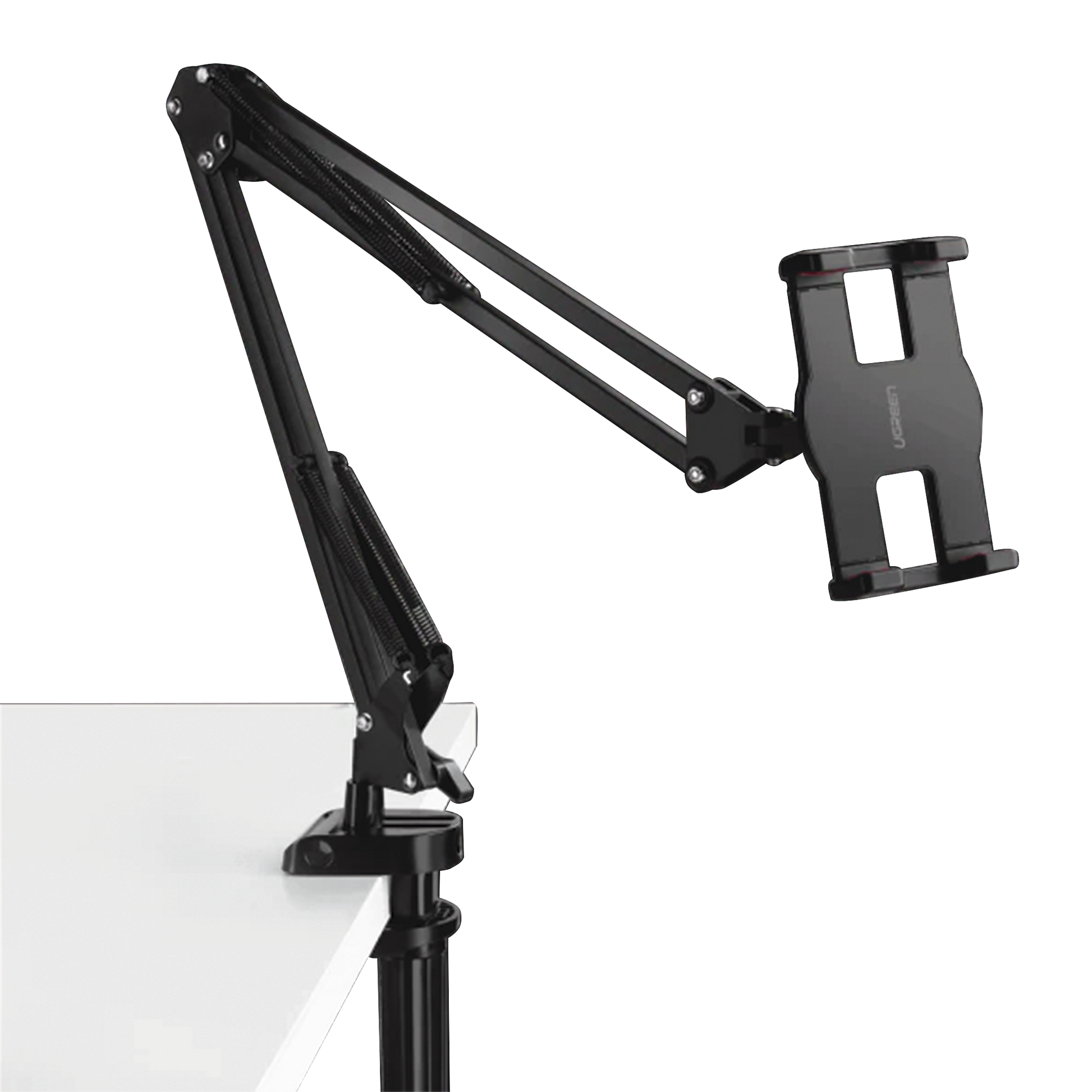 Soporte para Tableta con Brazo tipo Perezoso / Brazo Ajustable y Cabezal de 360° / 3 Perillas de Ajuste / Soporta dispositivos de 4'' a 12.9'' de hasta 1.5 KG / ABS + Metal de Alta Calidad.