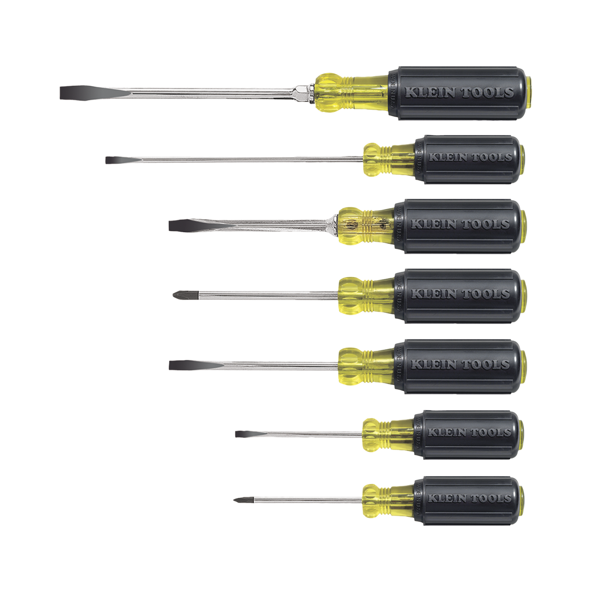 - Incluido: 7 desarmadores con mango acojinado; uno de barra cuadrada de 1/4'' (6,4 mm); 3/16''; 5/16'' (4,8 mm a 7,9 mm); punta cabinet de 3/16'' con barra de 3'' (76,2 mm); punta cabinet de 3/16'' (4,8 mm) con barra de 6'' (152,4 mm); punta cabinet de 1/4'' (6,4 mm); Phillips n.º 1 y Phillips n.º 2Aislado: No