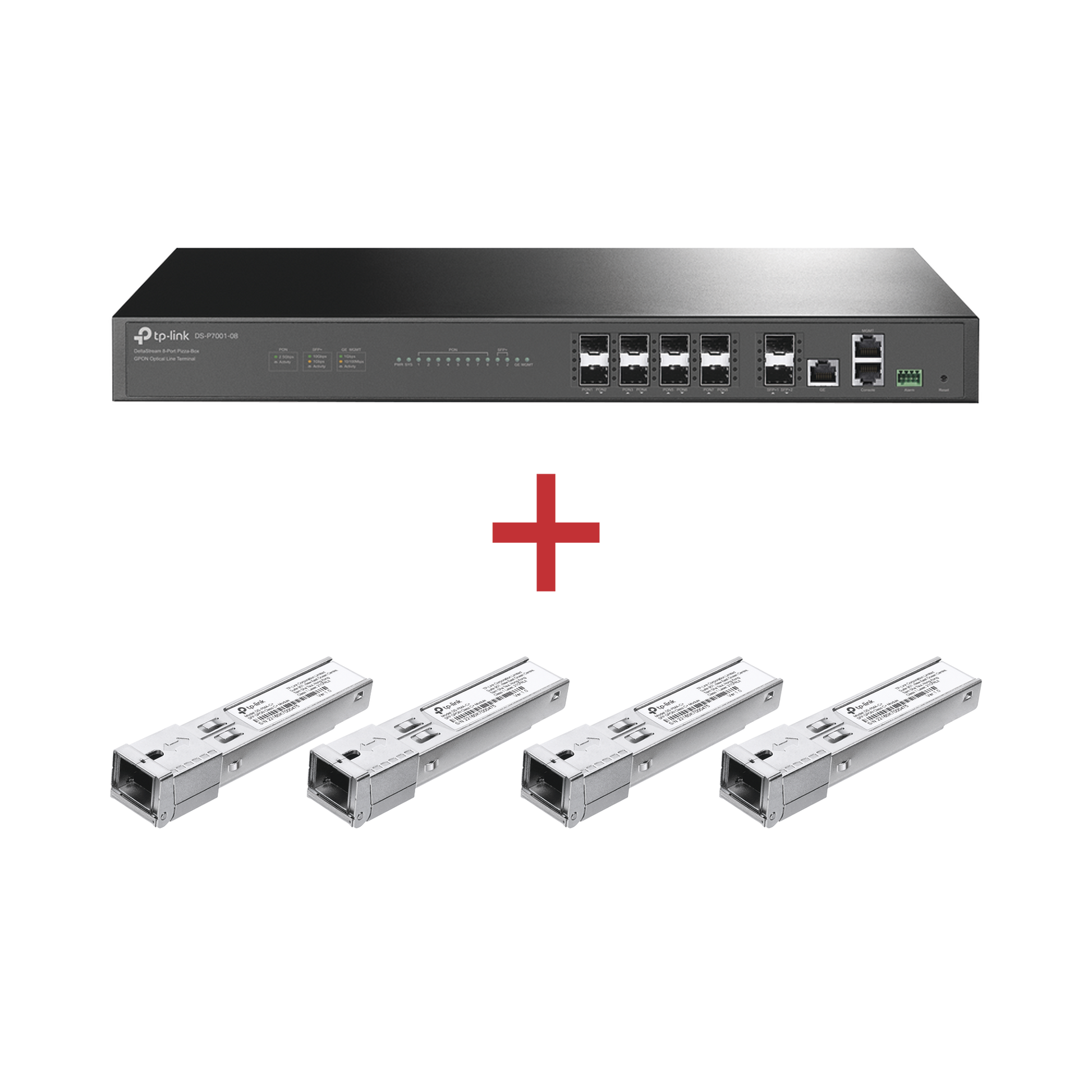 Kit para ISP´s / Paquete de 1 OLT 8 puertos PON / DS-P7001-08 + 4 Módulos PON DSP-MAC+ de regalo