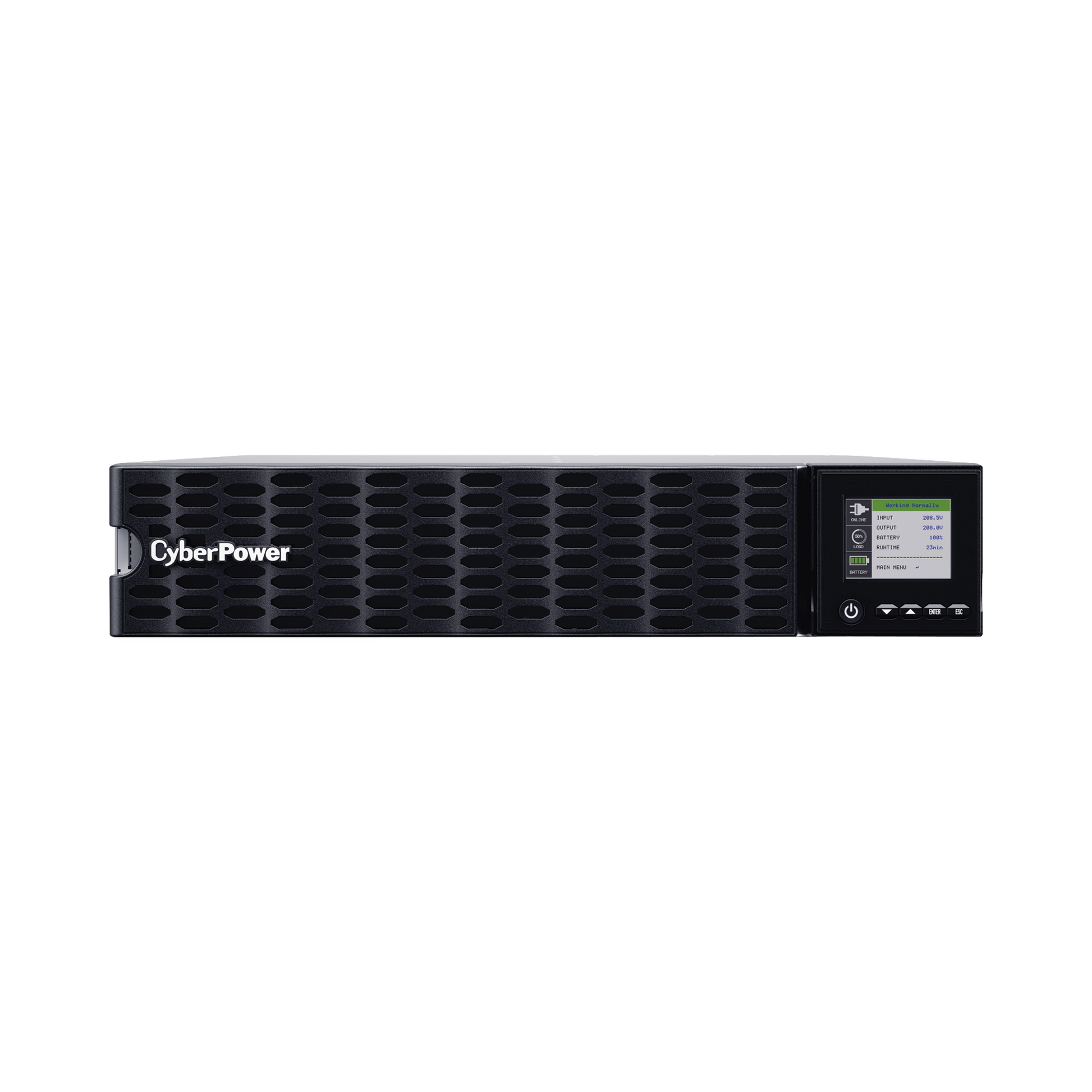 Para el monitoreo, este UPS ofrece una nueva pantalla LCD de matriz de color multifunción de última generación que es simple de configurar y fácil de usar. Las alertas codificadas por colores proporcionan un estado claro del UPS y la orientación de la pantalla gira automáticamente cuando se coloca en una configuración de torre.