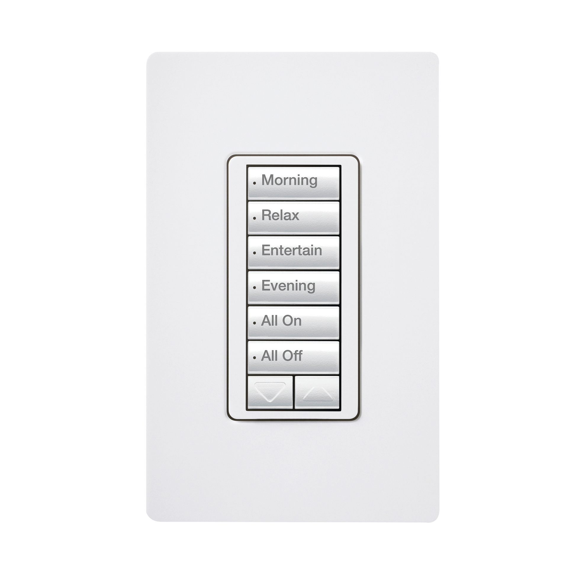 (RadioRA2) Teclado seetouch 6 botones, 2 botones subir/bajar, programe escenas diferentes en cada botón.